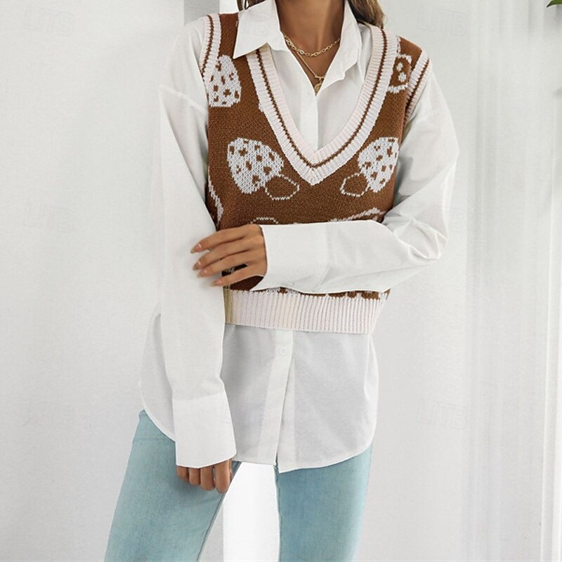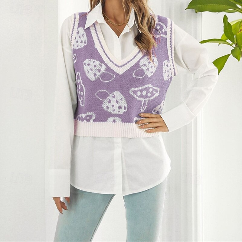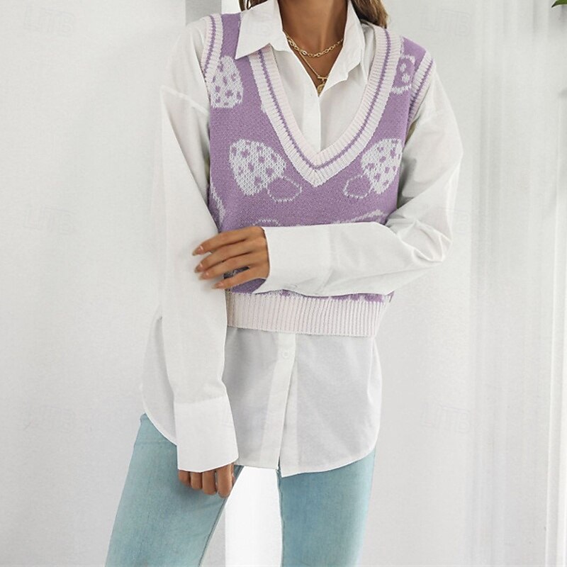 Why Choose Women's Sweater Vest Pullover Casual Graphic Chunky V Neck Knitted Sleeveless Regular Tops Knit Daily Holiday Going out Purple Green Fall Winter?