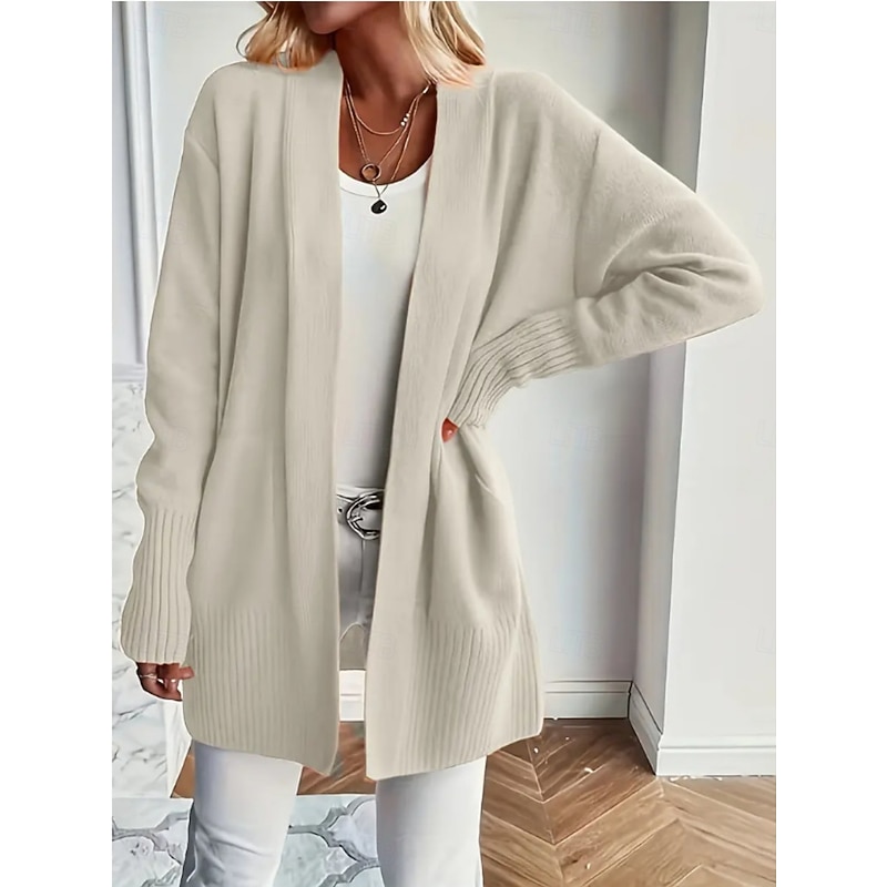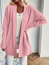 More information about Women's Sweater Cardigan Elegant Fashion Streetwear Pure Color Open Front Pocket Knitted Long Sleeve Regular Tops Knit Outdoor Daily Weekend Black White Fall Winter