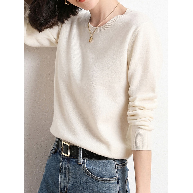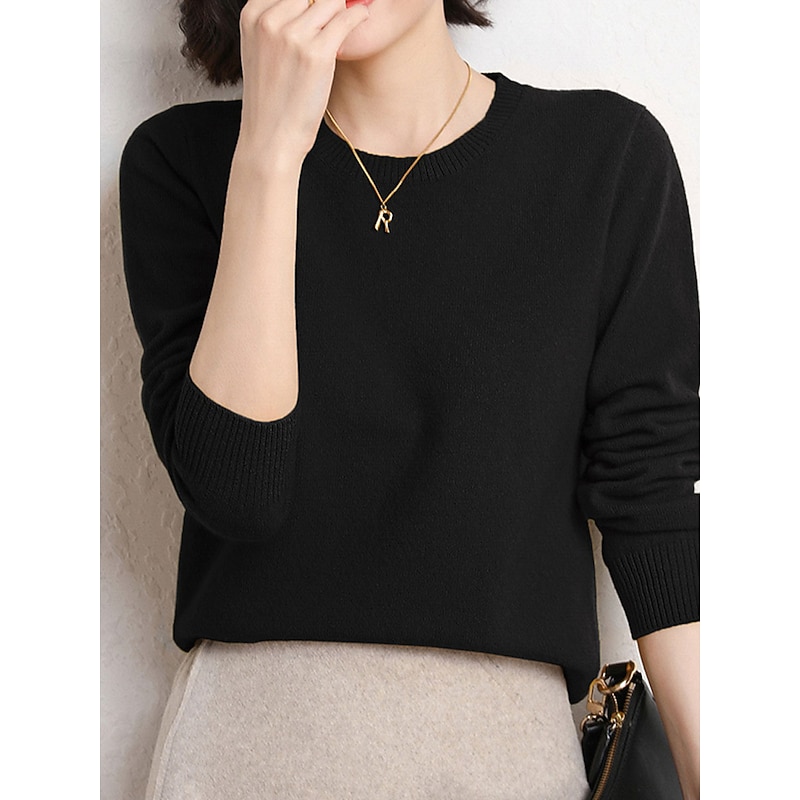 More information about Women's Pullover Sweater Jumper sophisticated Casual silky Solid Color Ribbed Crew Neck Oversized Long Sleeve Knit Outdoor Daily Going out Black White Fall Winter