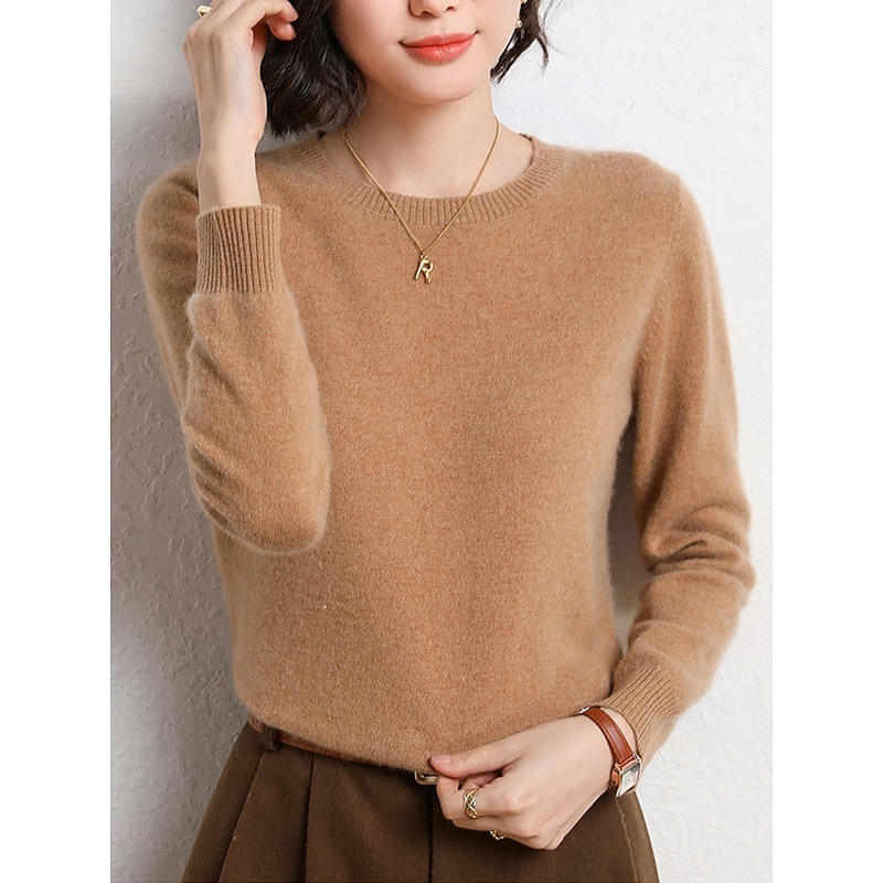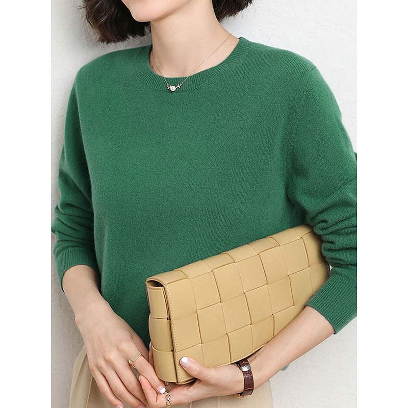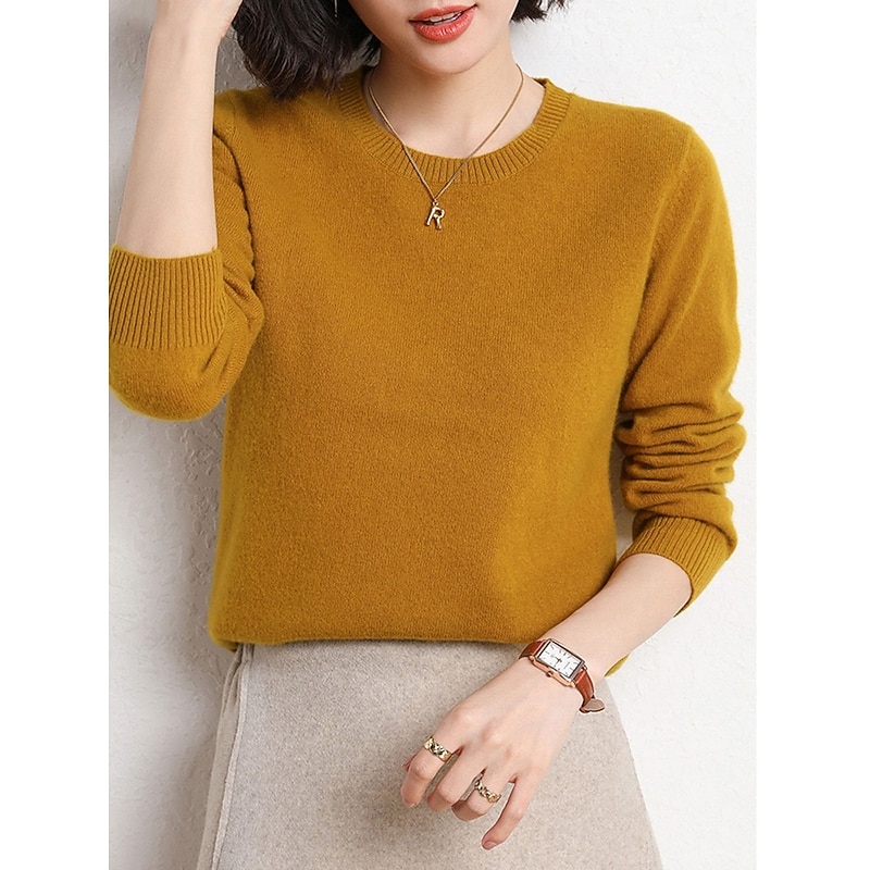 : The sweater showcases ribbed cuffs and hem, adding a touch of elegance to its solid color design. Available in a variety of shades including green, white, black, red, beige, camel, yellow, light brown, and khaki, the neutral tones provide versatility for any wardrobe.