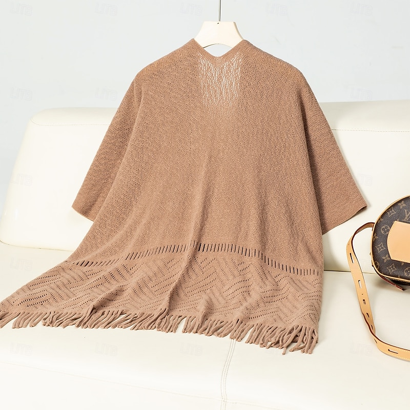 Women's Shrug sleek Casual Solid Color Ribbed Open Front Tassel Knitted Sleeveless Regular Tops Knit Outdoor Daily White Khaki Fall Winter
