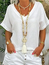 More information about Women's Linen-Inspired Shirts T Shirt Plain Fashion just-arrived-age Casual Short Sleeve V Neck Regular Tops Daily Weekend White Summer Spring