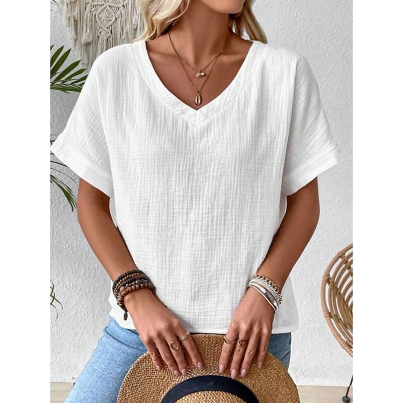 Women's Linen-Inspired Shirts T Shirt Plain Fashion Modern Casual Short Sleeve V Neck Regular Tops Daily Weekend White Summer Spring 7