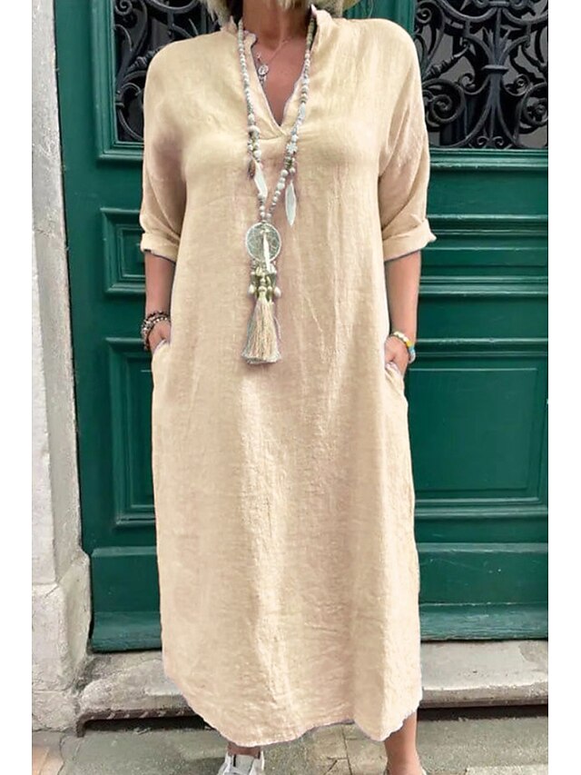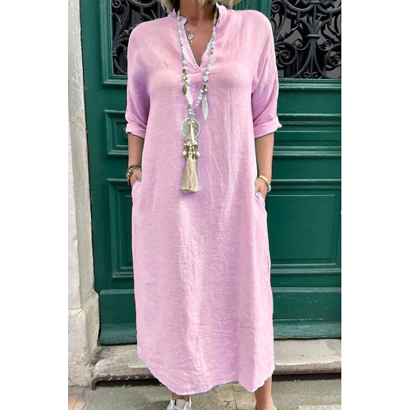 This Women's Midi Dress Linen-Inspired Dresses Cotton Linen Dress Basic Classic up-to-date Daily Holiday Weekend Regular Fit Plain Long Sleeve V Neck Pink Green Apricot Light Blue Summer combines elegant design with practical functionality. Every detail has been carefully considered to ensure you get the best possible experience. The finest construction means this product will serve you well for years to come.