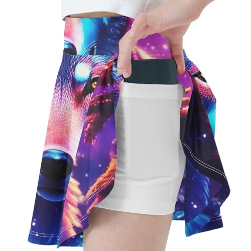 Majestic Wolf Galaxy Starry Night Tennis Skirts Toddler Fun Cute Girls Skorts Athletic Shorts School 4t 4