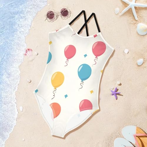 ZZKKO Colorful Balloon Girls Swimsuit One Piece Bathing Suit for Baby Girls' Swimwear 3-10T