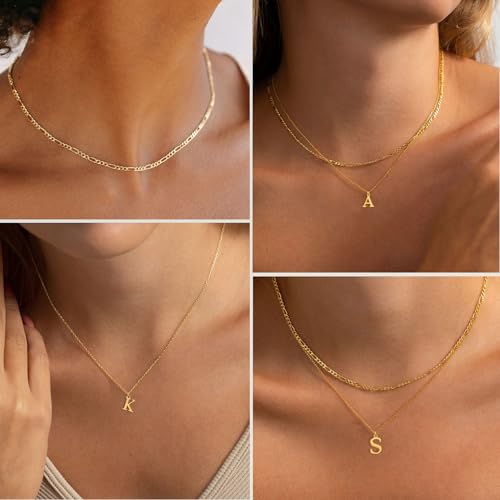 Initial Necklaces for Women Dainty Gold Silver Layered Letter Pendant Necklace Cute Figaro Chain Choker Necklace Personalized Trendy Stuff Jewelry Stack Gift for Women Teen Her
