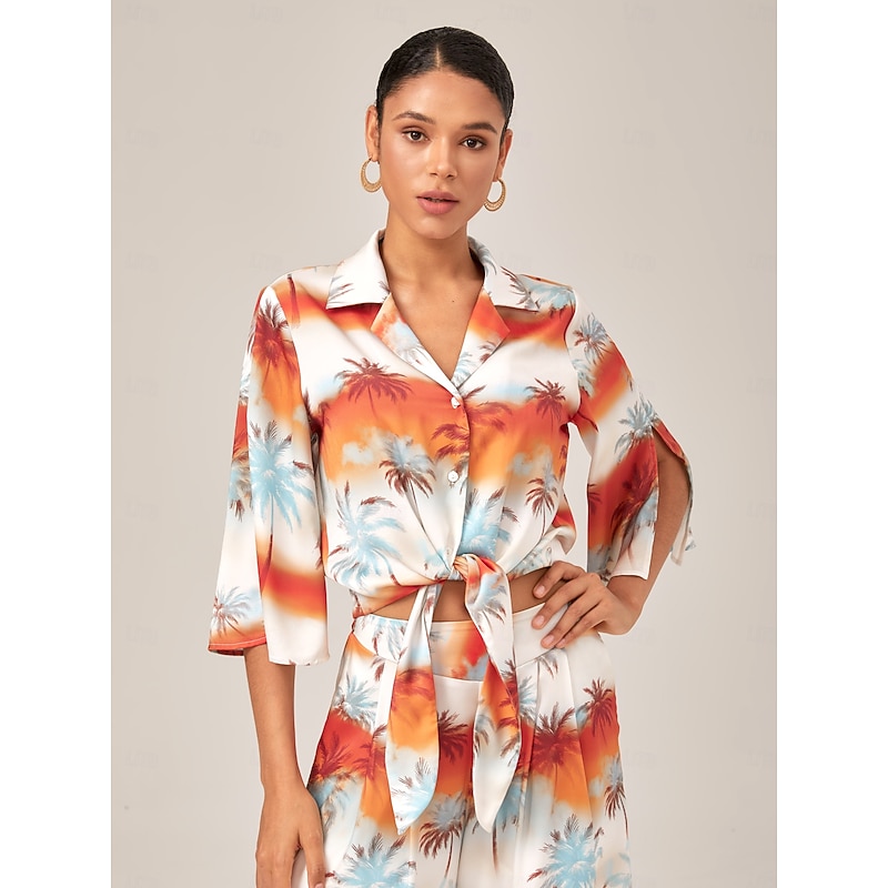 At www.3decard.com, we believe in providing our customers with only the best products. This Summer Cuban Collar Tie-front Cropped Loose-fitting Floral Top is designed with attention to detail and high quality craftsmanship that you can see and feel. Whether you're looking for functionality, style, or both, this product delivers exceptional value.