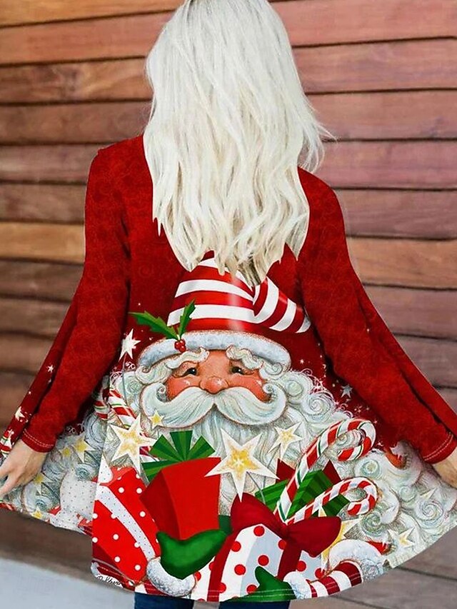 This Women's Winter Coat Lightweight snug Print Open Front Vintage Fashion Casual Santa Claus Vacation Casual Long Collarless Regular Fit Long Sleeve Outerwear Red Blue Purple Spring Fall combines elegant design with practical functionality. Every detail has been carefully considered to ensure you get the best possible experience. The finest construction means this product will serve you well for years to come.
