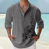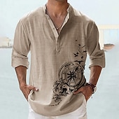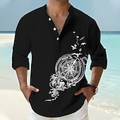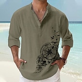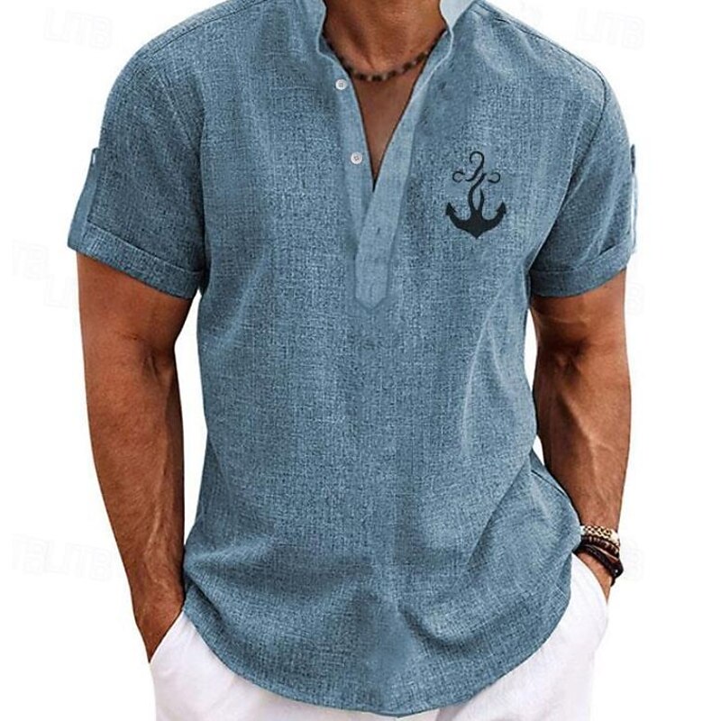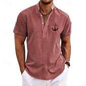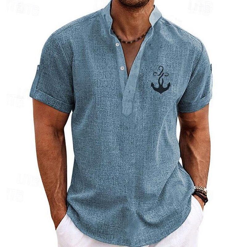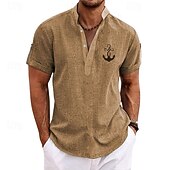 Highlights [Fabric] : Crafted from lightweight and breathable polyester, this men's shirt ensures comfort throughout warm spring and summer days. Its fabric is designed to offer a soft touch and ease of movement, making it perfect for outdoor adventures or casual outings. [Fit] : Featuring a regular fit, this shirt provides a relaxed yet chic silhouette. Its design effortlessly balances casual comfort with a touch of refinement, ideal for a versatile wardrobe staple. [Design Highlights] : The shirt boasts a modern stand collar and a classic button-up placket, complete with neat rolled sleeves to enhance its laid-back streetwear style. A distinctive graphic print and embroidered anchor pattern add a exclusive nautical charm, perfectly capturing a trendy, summery vibe. [Occasions] : Perfect for vacations, streetwear, daily casual outings, and outdoor activities. Whether you're heading to a beach outing or a casual night out, this shirt effortlessly combines style with practicality. [Size Range] : Available in sizes S, M, L, XL, XXL, and 3XL, catering to a wide range of body types and ensuring a comfortable fit for different individuals.
