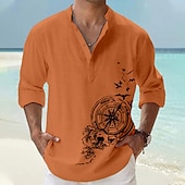 popular ! Men's Shirt Linen Shirt Beach Shirt Graphic Prints Outdoor Vacation Yellow Red Blue Green Short Sleeve Stand Collar Summer Spring Clothing Apparel Print