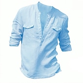 More information about Men's Shirt Cotton Linen Shirt White Cotton Shirt Chinese Collar Shirt Mandarin Collar Shirt Popover Shirt Plain Vacation Casual White Blue Long Sleeve Henley Spring & Summer Clothing Apparel