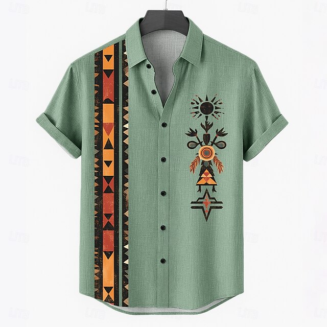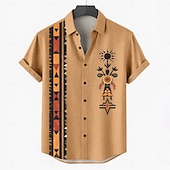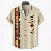 popular ! Men's Linen Shirt Summer Shirt Beach Wear Button Up Shirt Tribal Vacation Casual Brown Green Khaki Short Sleeve Turndown Summer Spring Clothing Apparel