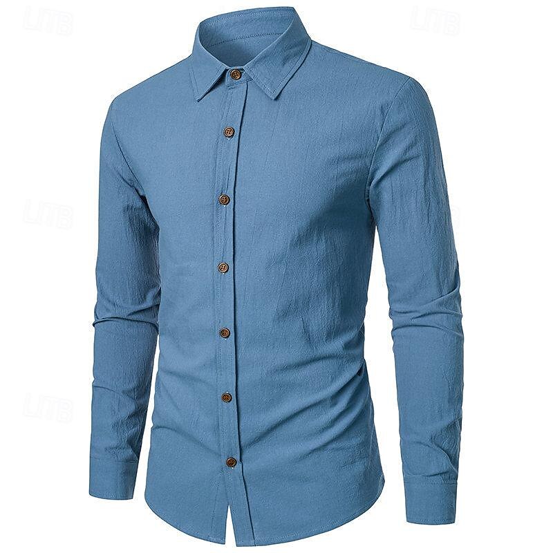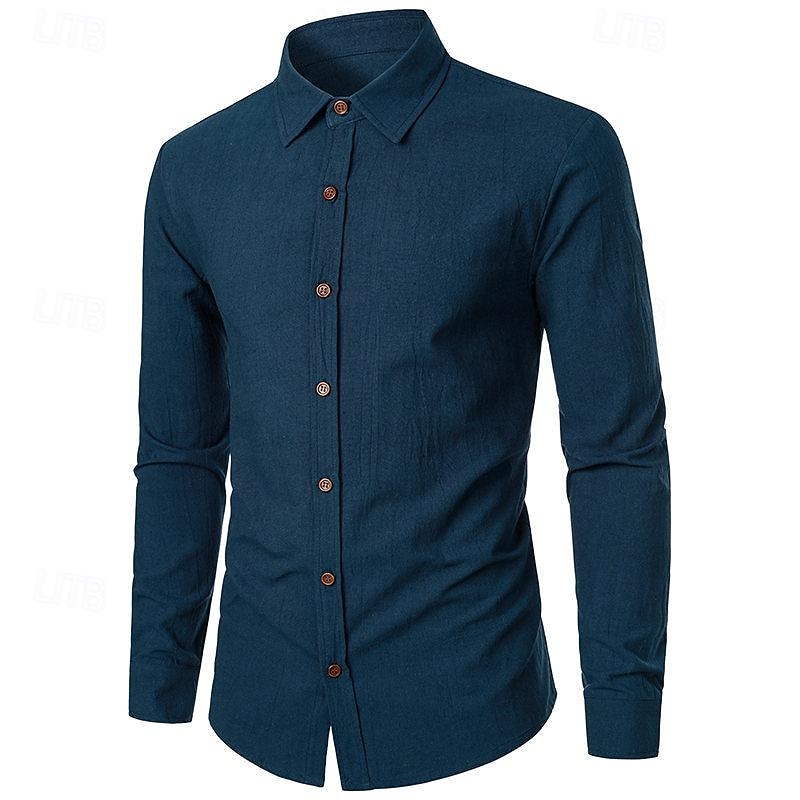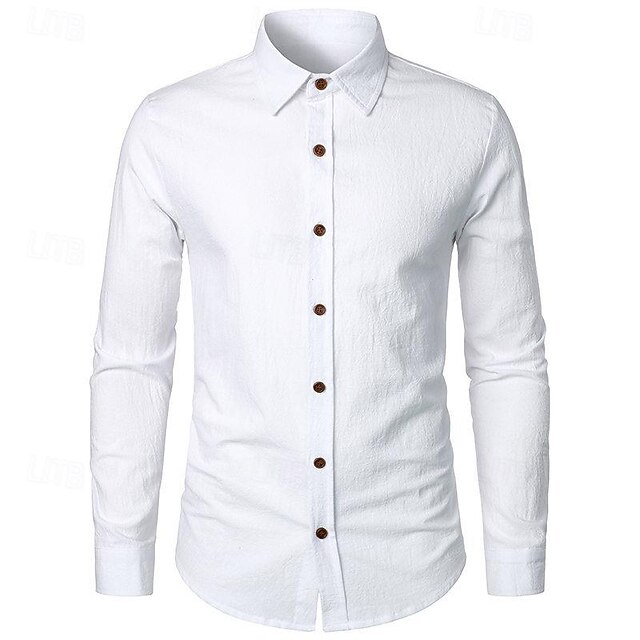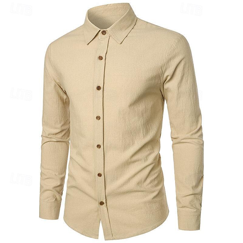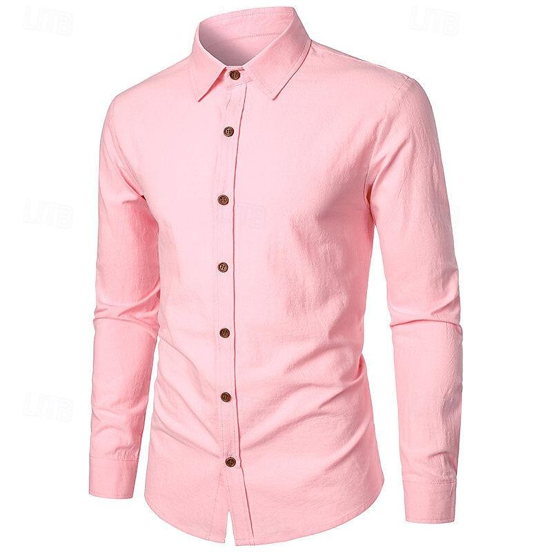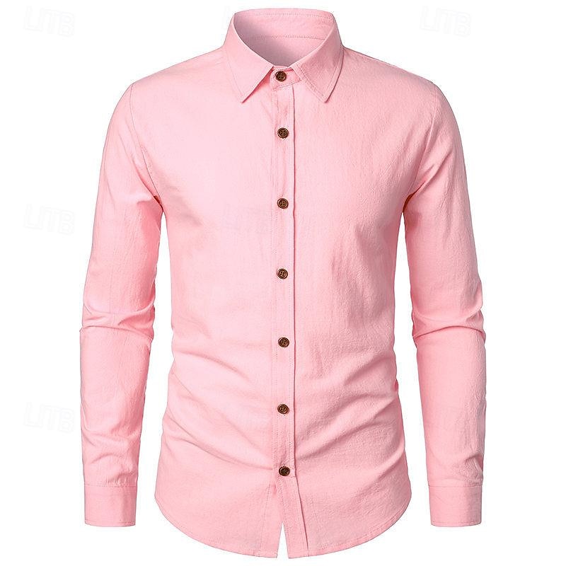 popular ! Men's Shirt Linen Shirt Casual Shirt Button Up Shirt Cotton Shirt Plain Vacation Hawaiian White Pink Navy Blue Blue Long Sleeve Turndown Spring & Fall Clothing Apparel Button-Down