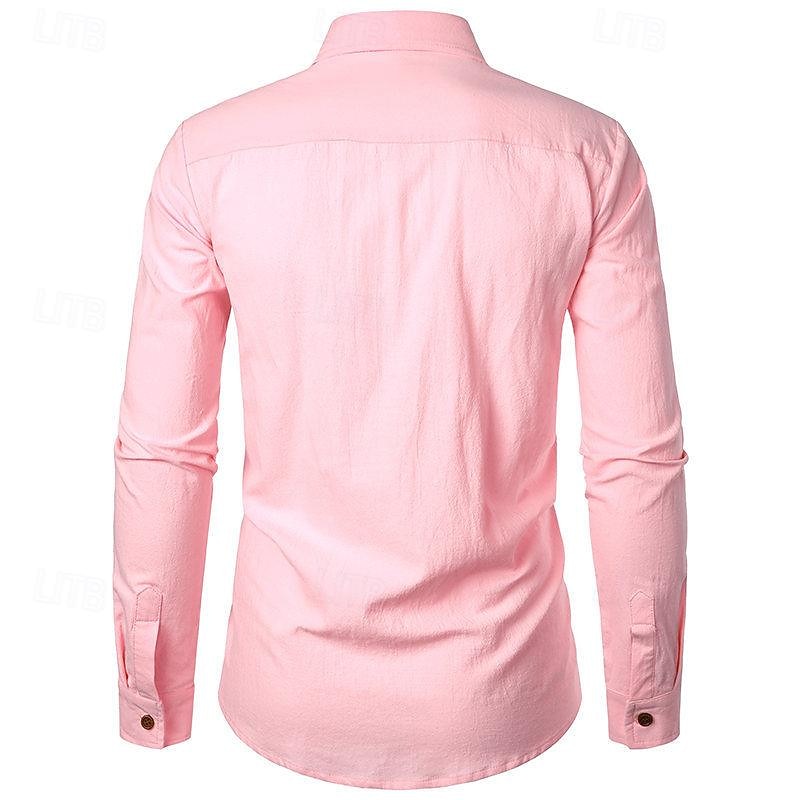 More information about Men's Shirt Linen Shirt Casual Shirt Button Up Shirt Cotton Shirt Plain Vacation Hawaiian White Pink Navy Blue Blue Long Sleeve Turndown Spring & Fall Clothing Apparel Button-Down