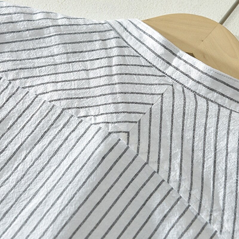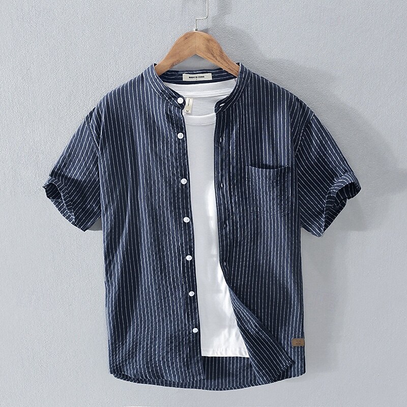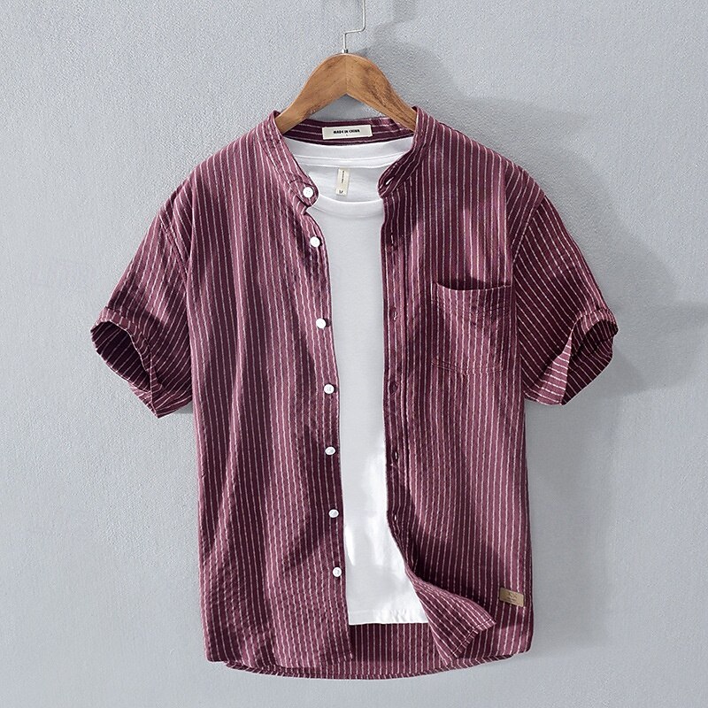 This Men's Shirt Linen Shirt Casual Shirt Button Up Shirt Cotton Shirt Stripe Vacation Street White Wine Royal Blue Short Sleeve Grandad Collar Summer Clothing Apparel Button-Down combines elegant design with practical functionality. Every detail has been carefully considered to ensure you get the ultimate possible experience. The top-grade construction means this product will serve you well for years to come.