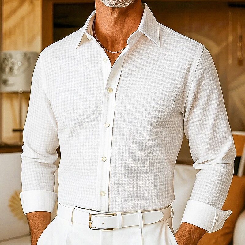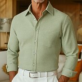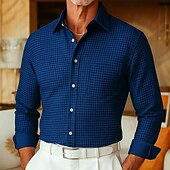 popular ! Men's Waffle Shirt Dress Shirt Plain Wedding Outdoor Light Blue White Yellow Navy Blue Long Sleeve Turndown every Seasons Clothing Apparel Plain