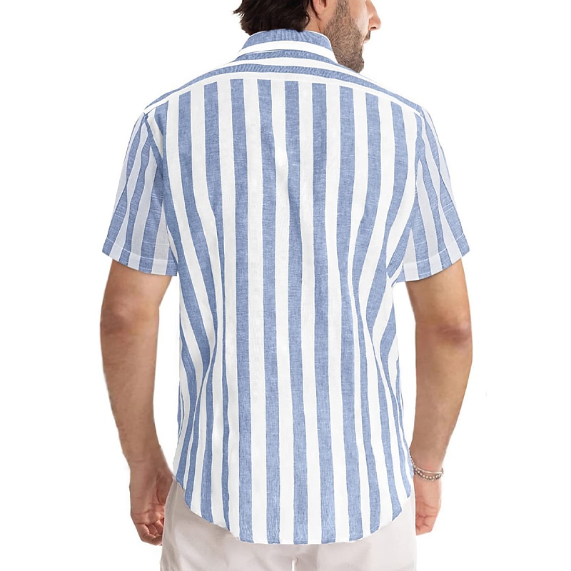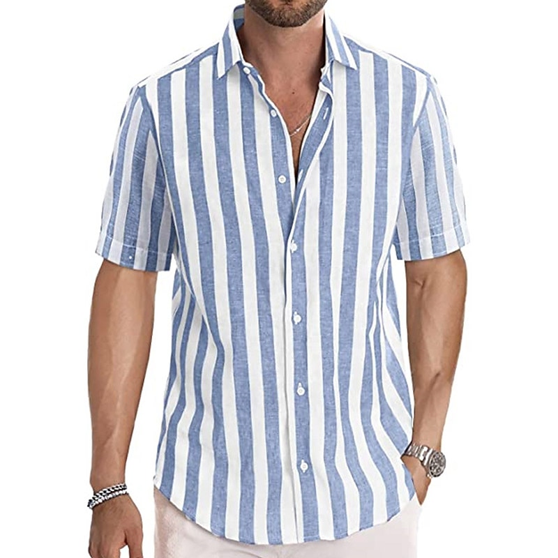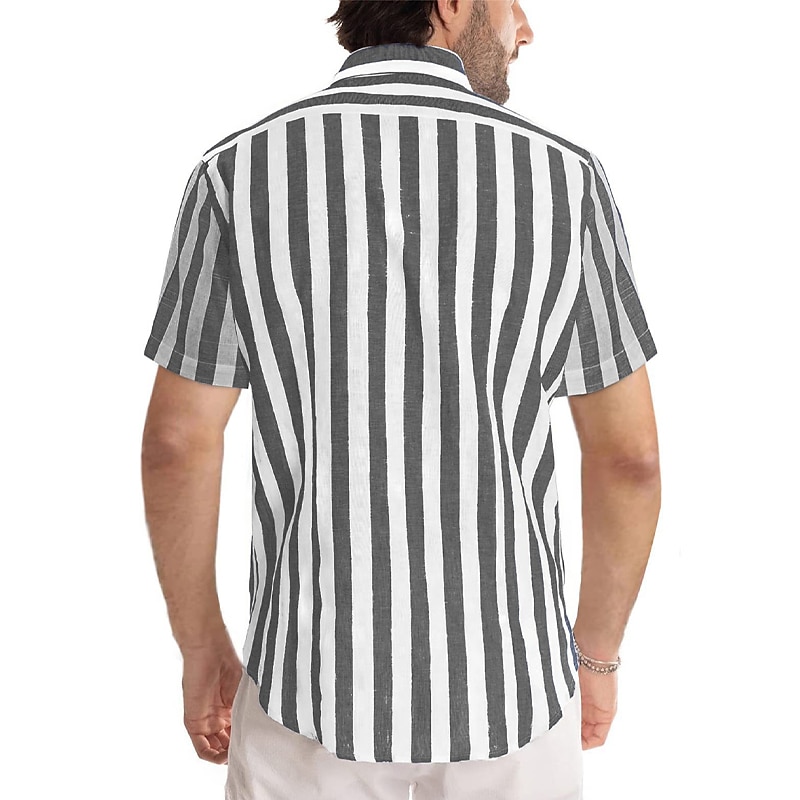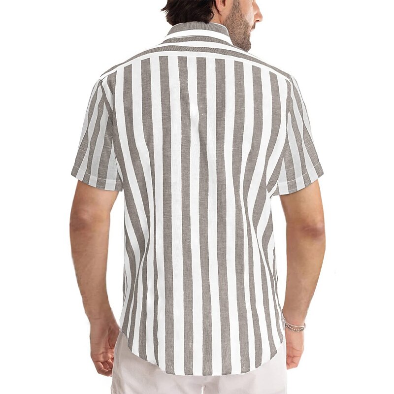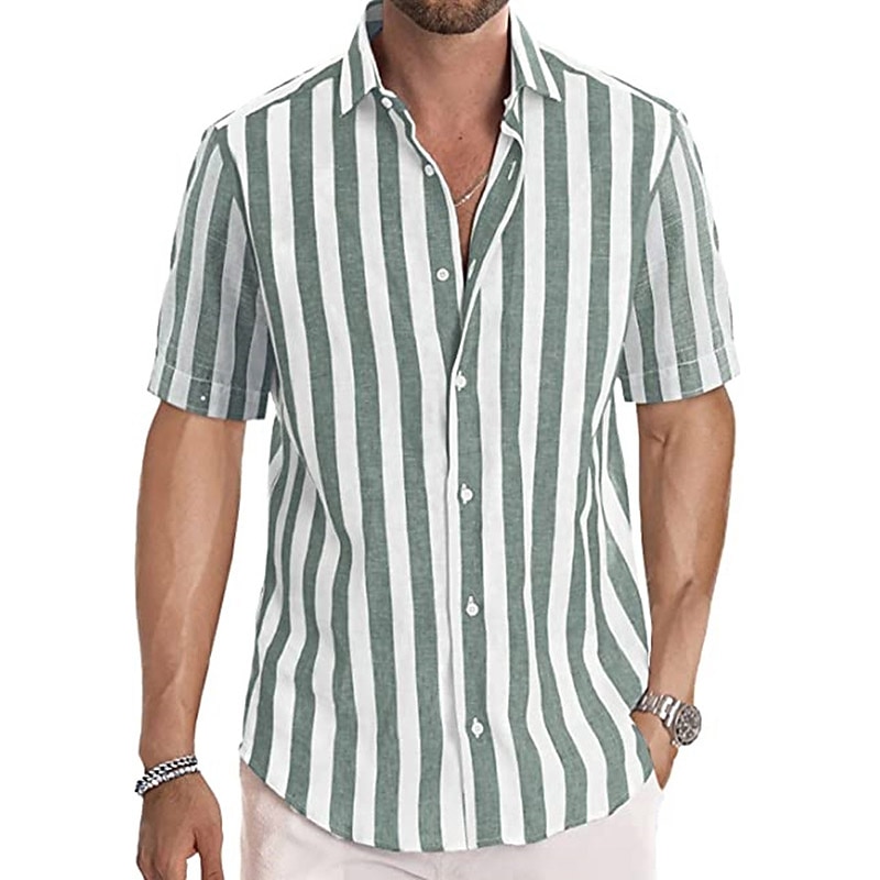 More information about Men's Shirt Casual Shirt Striped Shirts grey blue Black Blue Green Gray Short Sleeve Stripe Turndown Outdoor Daily Wear Print Clothing Apparel Polyester Fashion Streetwear Casual
