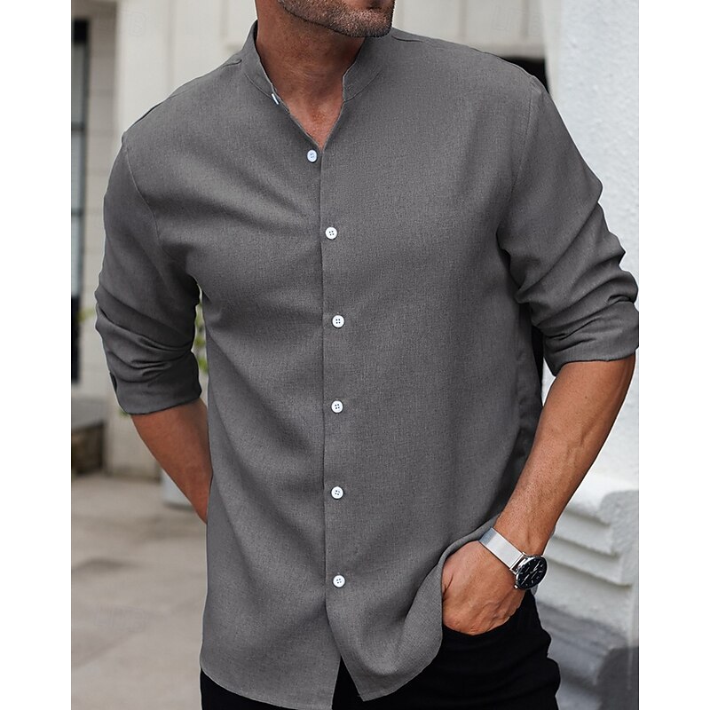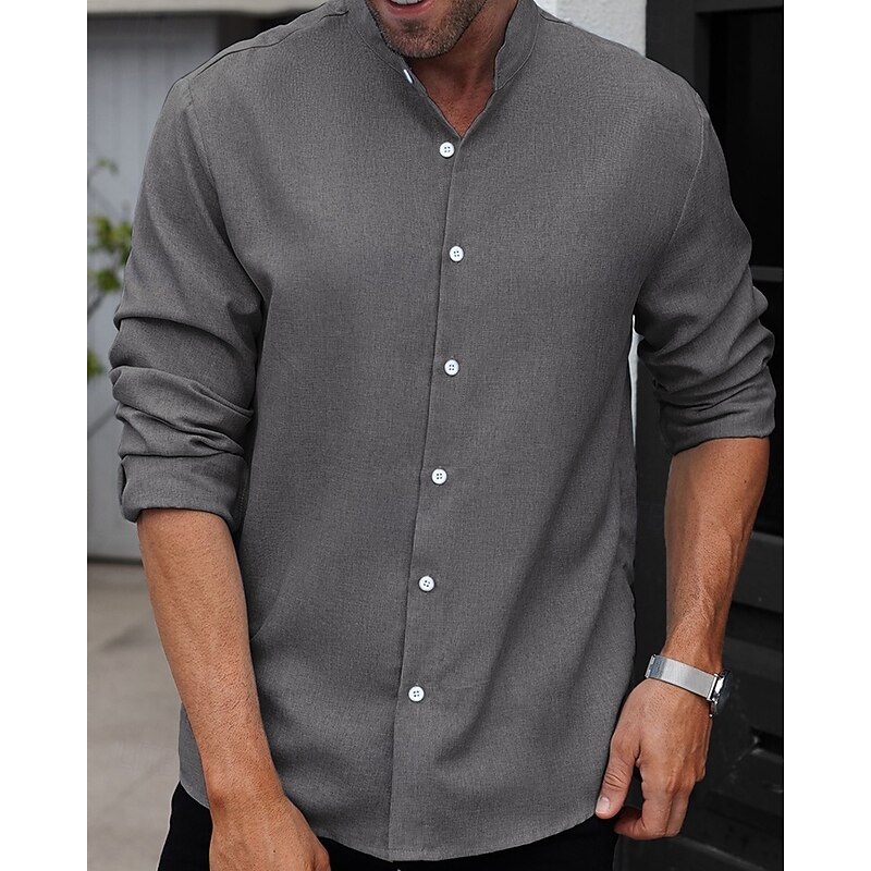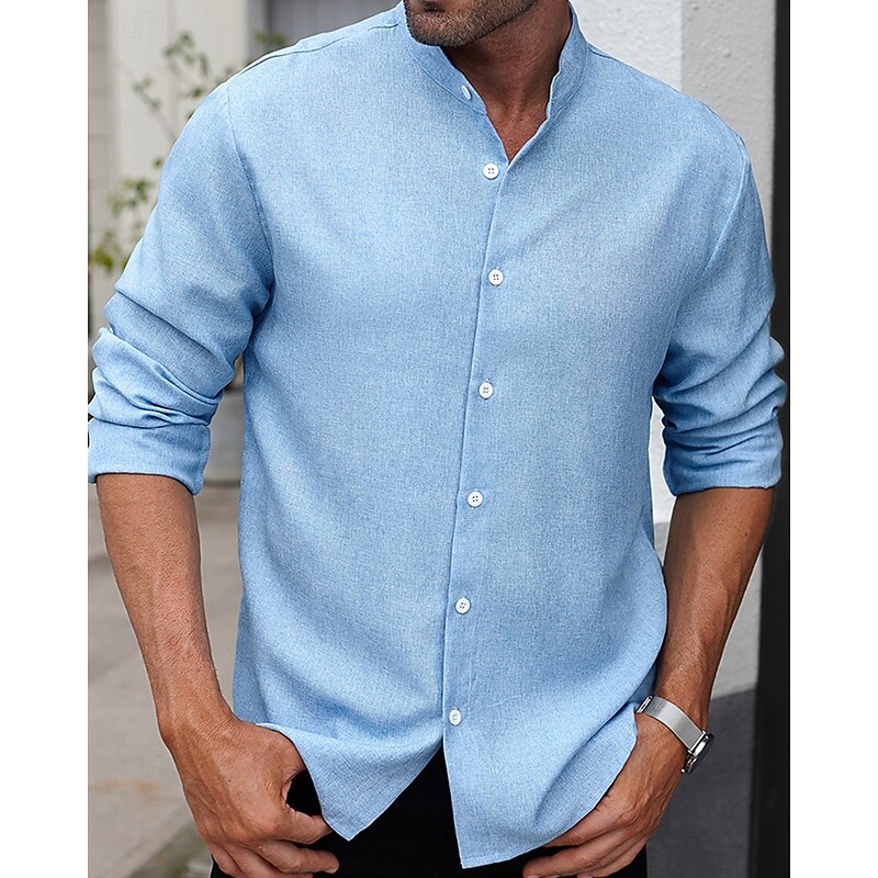 This Men's Shirt Summer Shirt Casual Shirt Beach Shirt Button Up Shirt Blue Gray Long Sleeve Plain Band Collar Vacation Hawaiian Clothing Apparel Polyester Fashion Casual relaxing combines elegant design with practical functionality. Every detail has been carefully considered to ensure you get the best possible experience. The excellent construction means this product will serve you well for years to come.