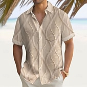 Men's Geometric Waves Shirt Summer Shirt Button Up Shirt Short Sleeve Fashion Casual Outdoor Vacation Dailywear Summer Spring Turndown 3D Print Collared Shirts Front One Pocket Blue Green Khaki Gray 10