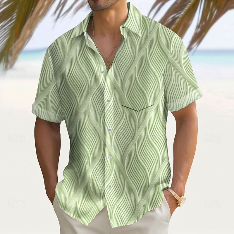 popular ! Men's Geometric Waves Shirt Summer Shirt Button Up Shirt Short Sleeve Fashion Casual Outdoor Vacation Dailywear Summer Spring Turndown 3D Print Collared Shirts Front One Pocket Blue Green Khaki Gray