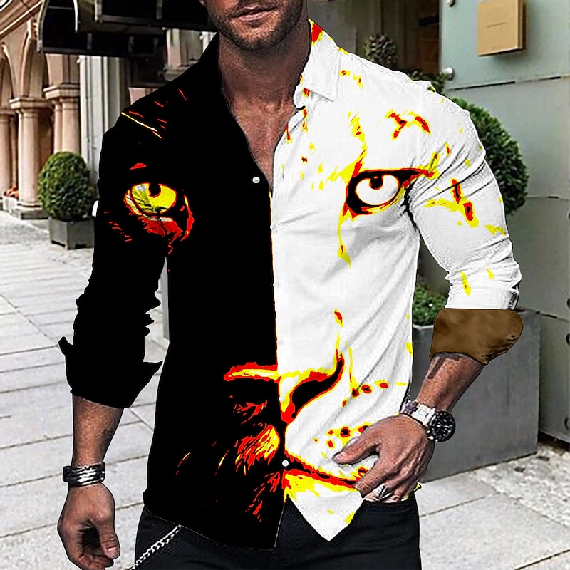 Men's Animal Leopard Shirt Button Up Shirt Long Sleeve Fashion Designer Casual Outdoor Casual Holiday Summer Spring Turndown Print Button-Down Black White Yellow Blue Brown