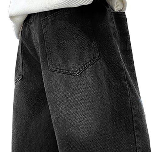 Tween Boys Baggy Jeans Elastic Waistband Wide Leg Denim Pants with Pockets, Casual Black Jeans for Boys