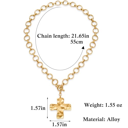 • Gold Chunky Necklace Size: The hammered cross symbolizes strength, faith, and hope. The lengh of this choker necklace is 21.5 in, cross size 1.57*.57 in, making it suitable for tremendously women
