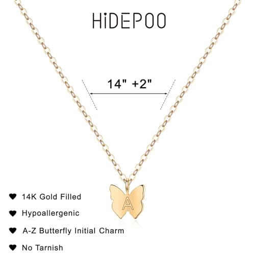popular ! Hidepoo Initial Butterfly Necklace for Girls Gifts, 14K Gold/Silver/Rose Gold Filled Dainty Butterfly Pendant Choker Necklace Initial Butterfly Necklace Birthday Gifts for Girls