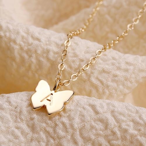 Hidepoo Initial Butterfly Necklace for Girls Gifts, 14K Gold/Silver/Rose Gold Filled Dainty Butterfly Pendant Choker Necklace Initial Butterfly Necklace Birthday Gifts for Girls 1