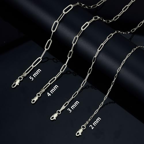 Silver Necklace for women 2mm 3mm 4mm 5mm Gold/Silver Paperclip Chain Solid 925 Sterling Silver Clasp Paperclip Chain for women 16/18/20/22/24/26/30 Inches