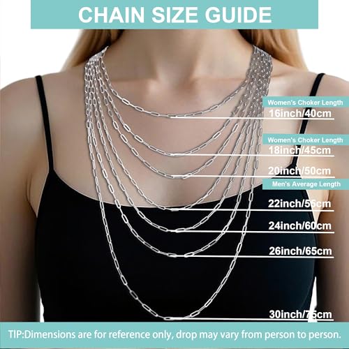 Item display length: 16 inchesMaterial: Sterling SilverMetal type: Sterling SilverClasp type: LobsterChain type: CrisscrossGem type: No Gemstone【Silver paperclip chain for women men】: This silver paperclip chain is crafted from premium materials, including 925 sterling silver and a lobster claw clasp.The Chain is plated with extra thick 925 sterling silver enhances its durability and makes it resistant to daily wear and tear.Whether you choose to wear it on its own as a statement piece or to layer it with other chains, this necklace exudes modern elegance that is suitable for both casual and formal occasions.【Comfortable】:This silver paperclip necklace boasts a smooth, shiny surface that sits comfortably against your skin, providing a protective and comfortable fit. It's crafted from high-quality materials that are lead-free and nickel-free, making it safe for individuals with sensitive skin to wear without any concerns.Rest assured that this paperclip necklace for women is designed with your comfort in mind, and you can enjoy its beauty without experiencing any discomfort or irritation.【Italian Craftsmanship】-This silver necklace Crafted using Italian diamond-cut techniques, perfect shine. Italian jewelry has always been revered for its exceptional craftsmanship, resulting in pieces that are not only fashionable and elegant but also of superior quality.With its exquisite attention to detail, this silver necklace showcases the skilled artistry of Italian craftsmen, resulting in a stunning and timeless piece of jewelry that is sure to capture attention and elevate any outfi【Perfect Gift】 - Classic and sleek unisex necklace for the guy who values the quality of fine Italian craftsmanship. It’s the perfect gift for husband, wife, mom, dad, brother, sister, boyfriend, best friend, or for you. The perfect present to elevate a personality.【Excellent Service】:We are committed to providing excellent service to our customers and offer a lifetime warranty for this paperclip necklace. If you encounter any issues with your necklace chain, rest assured that we will provide you with the perfect answer and solution within 24 hours.Our dedicated customer service team is here to help you every step of the way, ensuring that you have a hassle-free and satisfying experience. Perfect for everyday use. first-class materials and excellent craftsmanship ensure long-lasting durability.