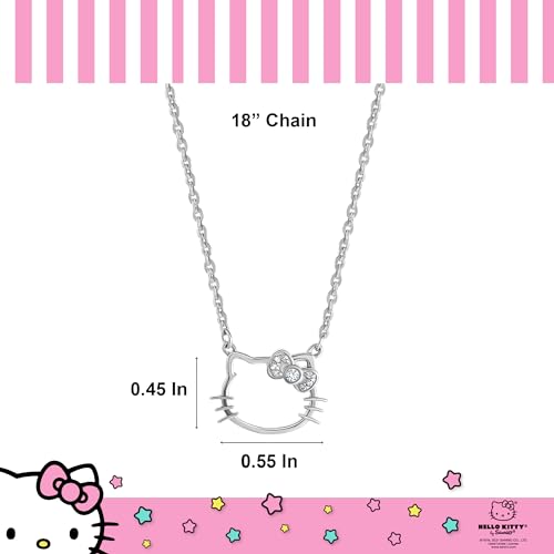 Hello Kitty Sanrio Womens Lab Created Diamond Bow Necklace 18" - Sterling Silver Silhouette Necklace Official License 2