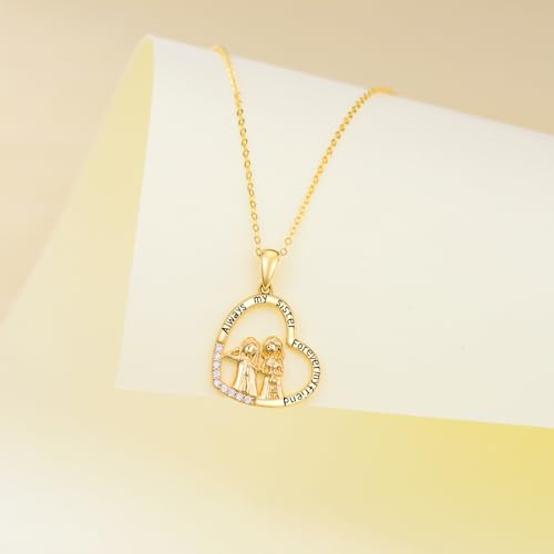 KECHO 14K Real Gold Sister Necklace for Women - Heart Mother Pendant Jewelry for Brother - Mothers Day Birthday Gifts for Mom Friends