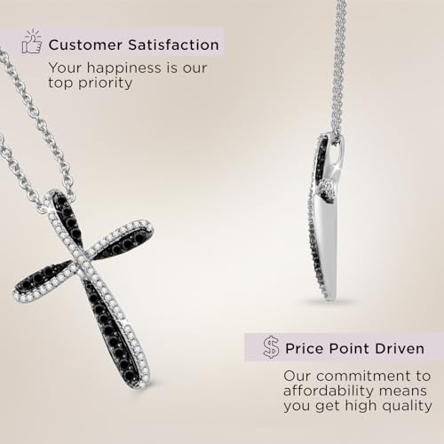 Jewelili Sterling Silver Cross Pendant Necklace for Womens | 1/3 CTTW Treated Black and Natural White Round Diamonds | 18" Rolo Chain | retro Jewelry with Gift Box