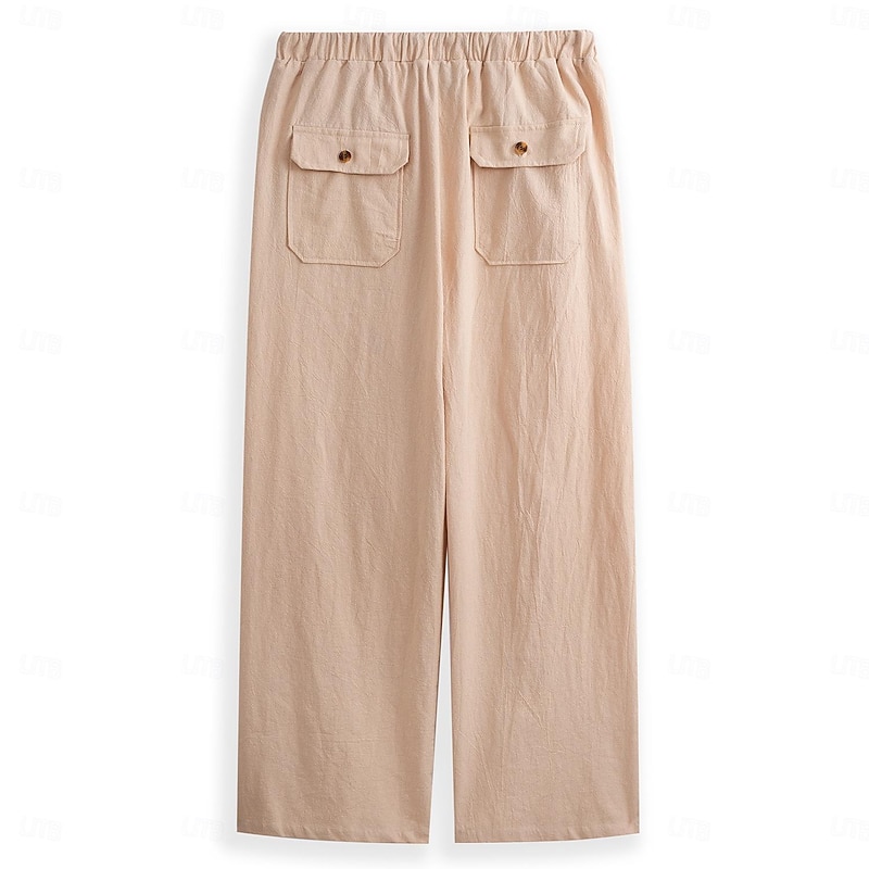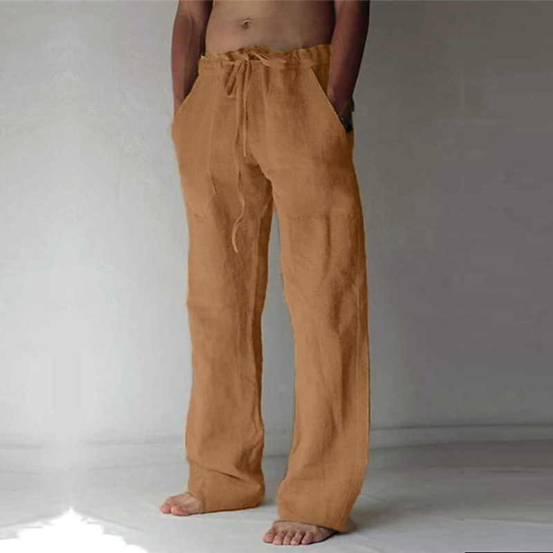 More information about Men's Linen Pants Trousers Summer Pants Drawstring Pocket Plain Comfort Lightweight Full Length Yoga Casual Daily Basic Straight Loose Fit Black White Micro-elastic