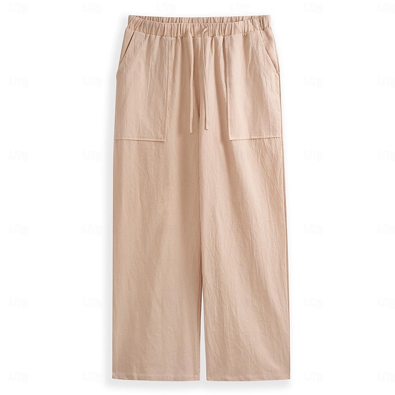 Men's Linen Pants Trousers Summer Pants Drawstring Pocket Plain Comfort Lightweight Full Length Yoga Casual Daily Basic Straight Loose Fit Black White Micro-elastic 9