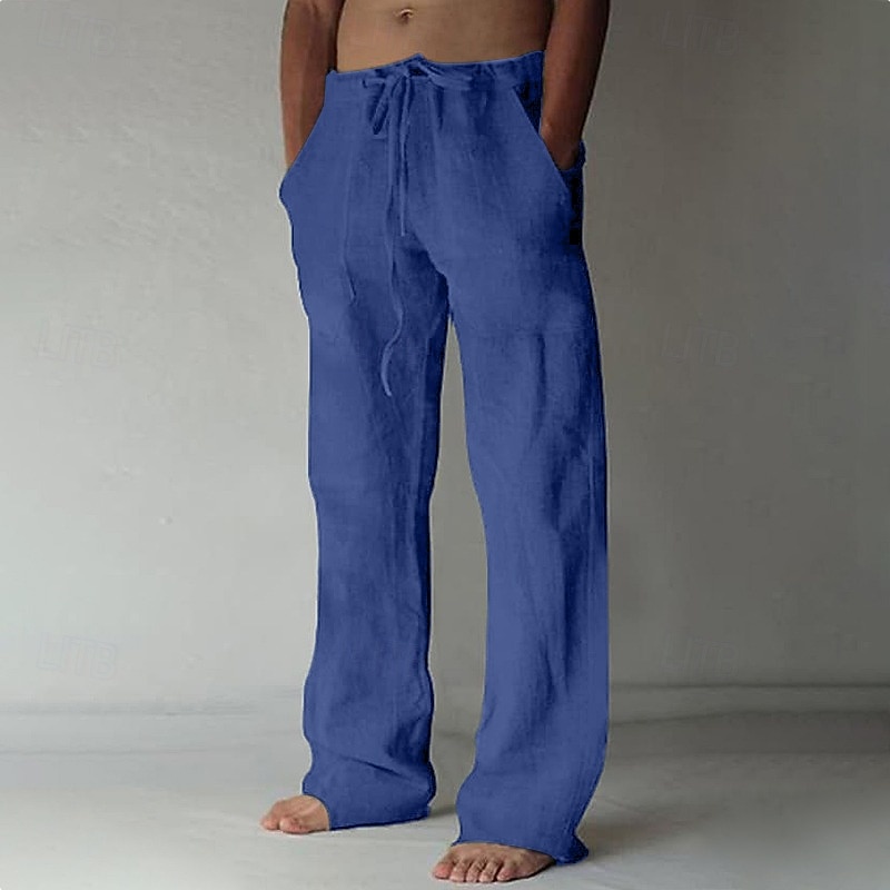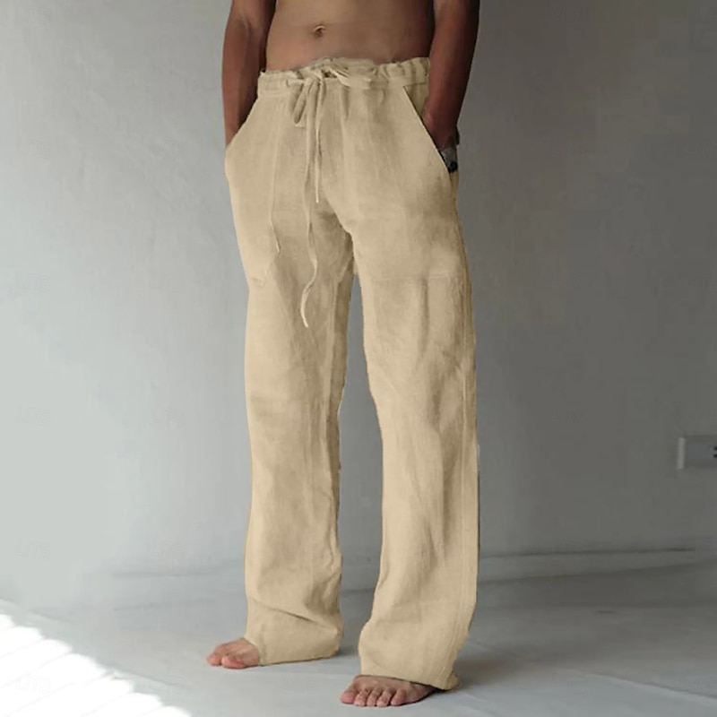 popular ! Men's Linen Pants Trousers Summer Pants Drawstring Pocket Plain Comfort Lightweight Full Length Yoga Casual Daily Basic Straight Loose Fit Black White Micro-elastic