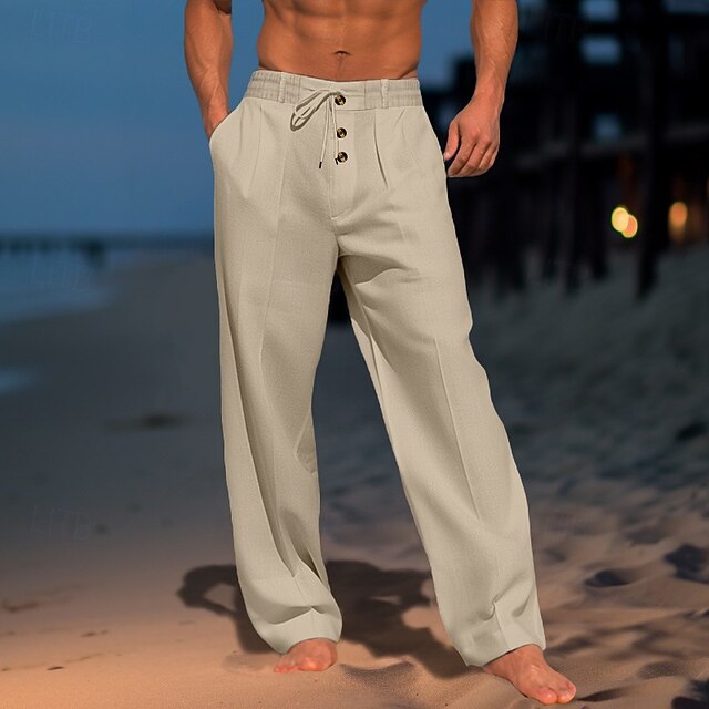 Why Choose Men's Linen Pants Trousers Summer Pants Gauze Pants Drawstring Elastic Waist Straight Leg Plain Comfort Breathable Full Length Daily Holiday Beach Vacation Fashion White Sky Blue?
