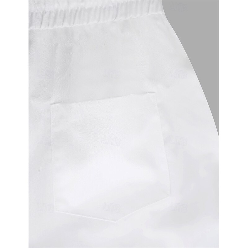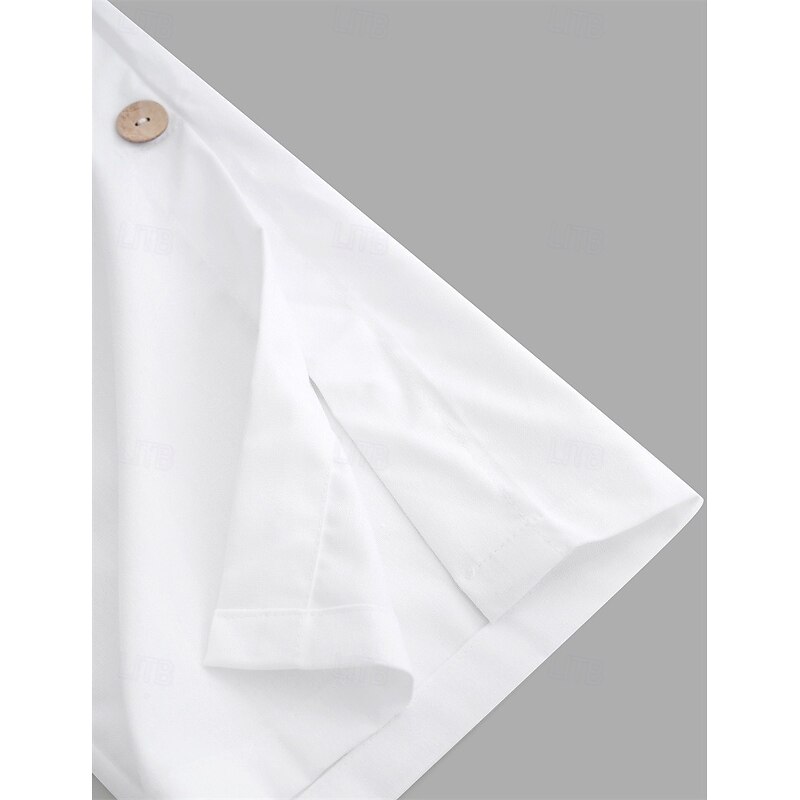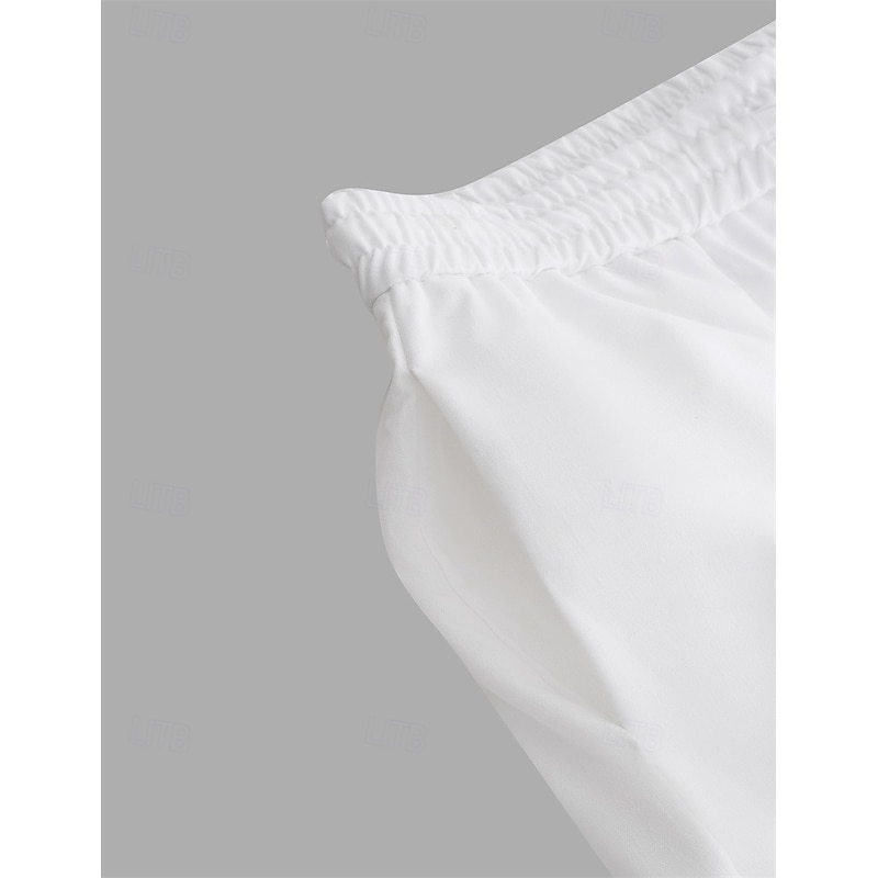 More information about Men's Linen Pants Trousers Summer Pants Baggy Pants Drawstring Elastic Waist Side Button Plain Breathable Knee Length Outdoor Vacation Casual Vacation Ethnic Style Black White Inelastic