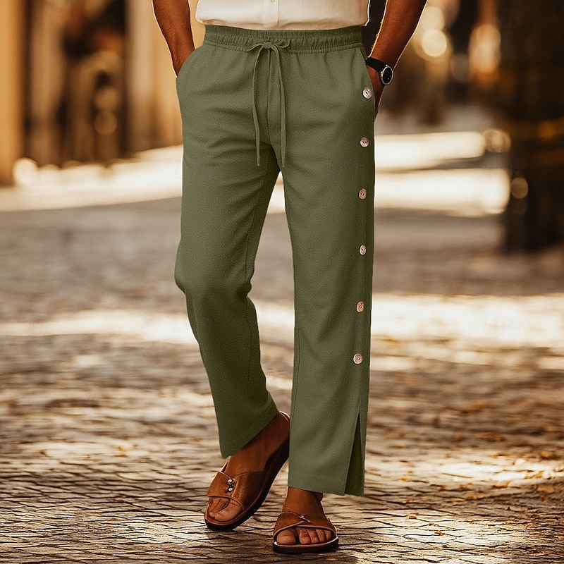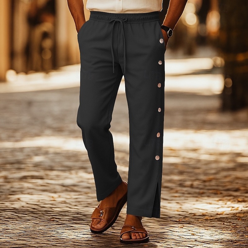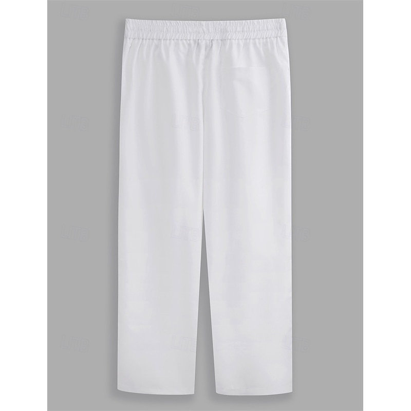 popular ! Men's Linen Pants Trousers Summer Pants Baggy Pants Drawstring Elastic Waist Side Button Plain Breathable Knee Length Outdoor Vacation Casual Vacation Ethnic Style Black White Inelastic