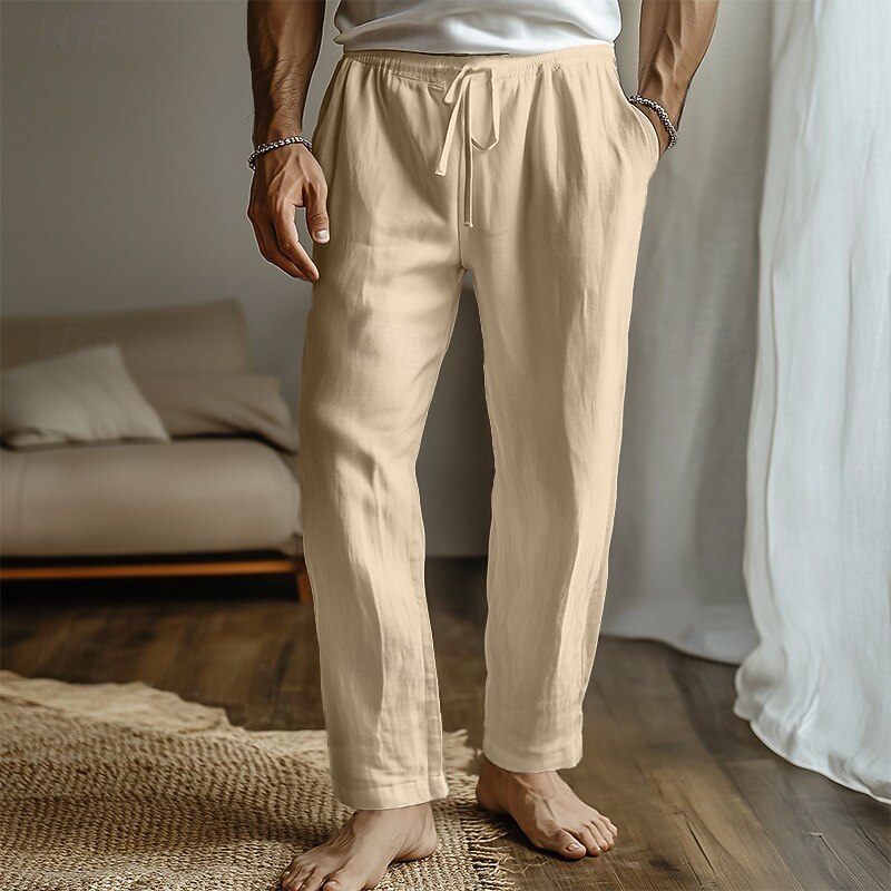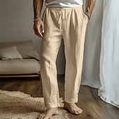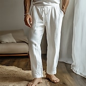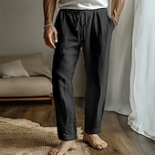 More information about Men's Linen Pants Trousers Summer Pants Beach Pants Drawstring Elastic Waist Plain Comfort Breathable Full Length Home Casual Daily Fashion retro Style Black White