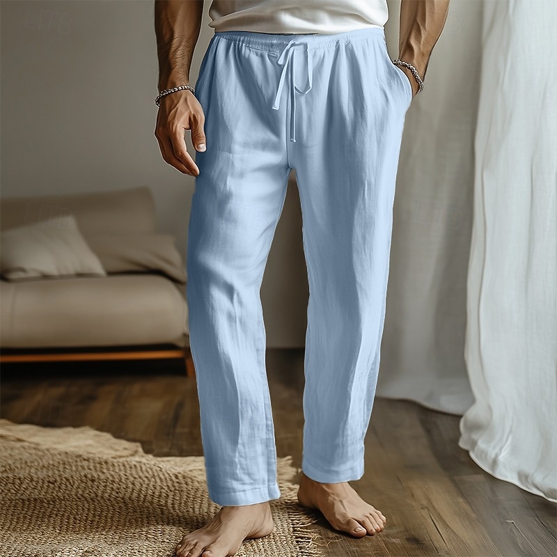 popular ! Men's Linen Pants Trousers Summer Pants Beach Pants Drawstring Elastic Waist Plain Comfort Breathable Full Length Home Casual Daily Fashion iconic Style Black White