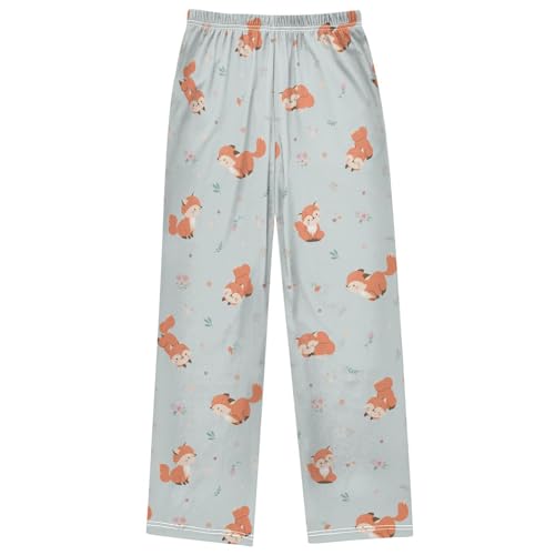 Boy's Pants Wildlife Animal Red Fox Flower Jogger Pants Elastic Waist Long Bottoms Trousers with Pockets 6-14 Years