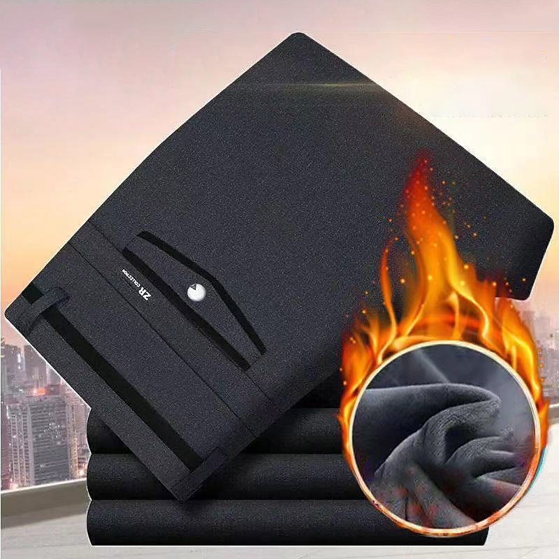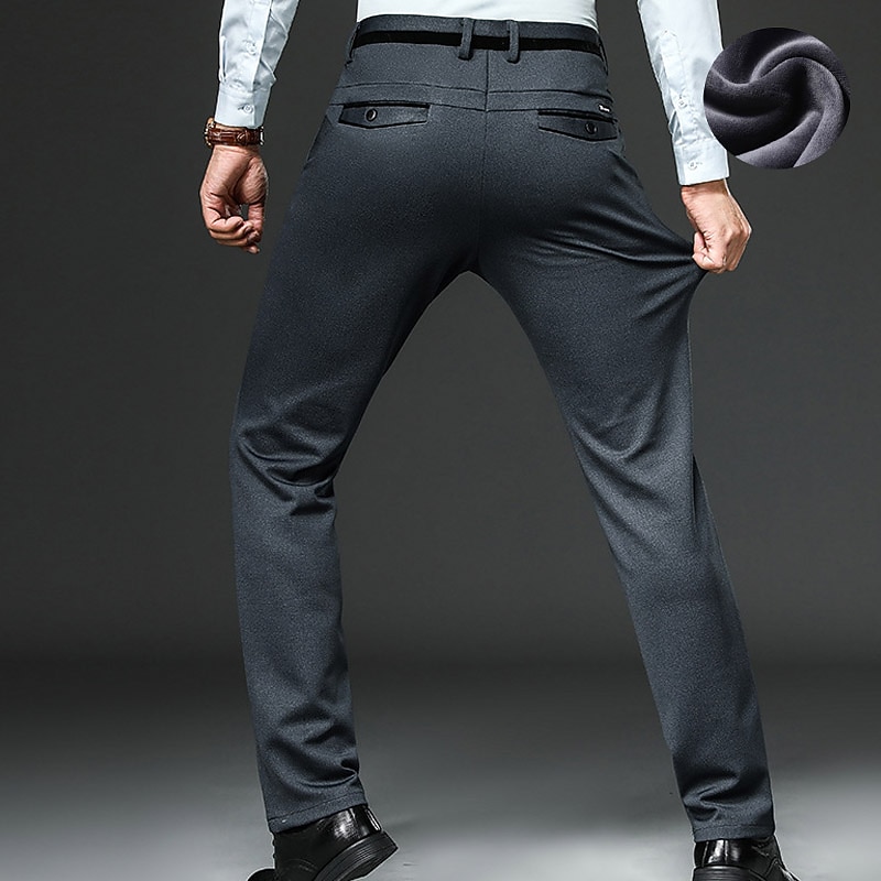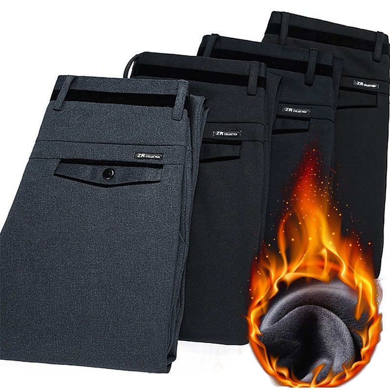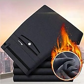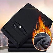 Men's Dress Pants Fleece Pants Winter Pants Trousers Pocket Straight Leg Plain Wedding Office Work Chic & fresh-age Formal Black Navy Blue High Waist Micro-elastic