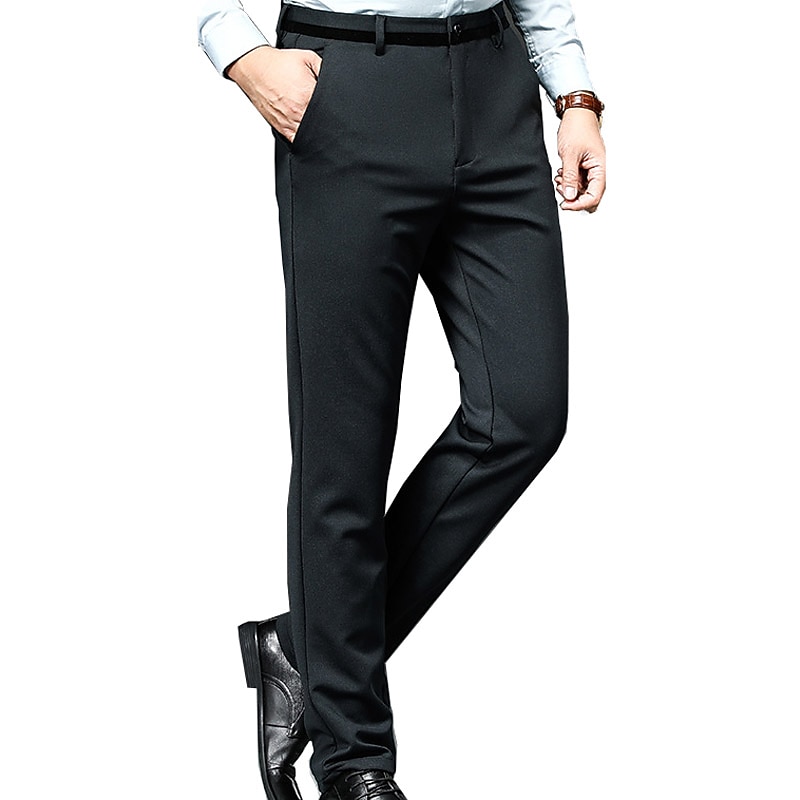 Highlights [Fabric] : Crafted from a high-quality chemical fiber blend, these men's trousers offer both warmth and durability, making them ideal for fall and winter seasons. The micro-elastic fabric ensures a comfortable fit while maintaining a smooth and sophisticated appearance suitable for various formal settings. [Fit] : These trousers feature a regular fit, designed to provide a sharp and polished silhouette. The high waist enhances the overall elegant look, making them perfect for creating a chic and modern vibe. [Design Highlights] : The trousers are equipped with chic pockets, accentuated with a decorative button that adds a touch of class. The straight leg design contributes to their timeless formal appeal, while the zipper and button fly type ensures a secure and comfortable wear. [Occasions] : Ideal for weddings, business meetings, office work, and other formal or semi-formal occasions. These trousers are versatile and can be paired with different shirts and blazers, making them a staple in any professional wardrobe. [Size Range] : Available in a wide range of sizes, from 29 to 42, ensuring that these trousers cater to a variety of body types and preferences. With color options including black, dark gray, navy blue, and grey, they offer versatility for different wardrobe styles. Perfect for everyday use. supreme materials and excellent craftsmanship ensure long-lasting durability.