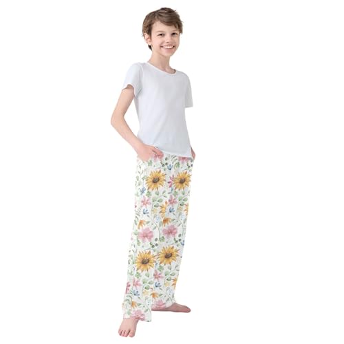 ZZKKO Watercolor Flowers Sunflower Boys Pants for Kids Jogger Pants with Pockets S-XL 5