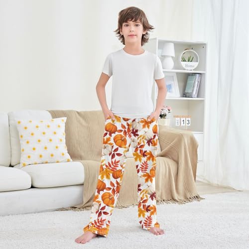 Happy Fall Pumpkin Maple Leaf Boys Long Pants tender Trousers Elastic Waist Kids Lounge Bottoms with Pockets S-XL