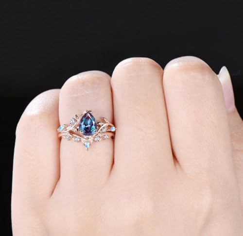 Vintage Pear Alexandrite Engagement Ring Set Bridal Set for Women Blue Moonstone Accents Anniversary Promise Ring Gift 6