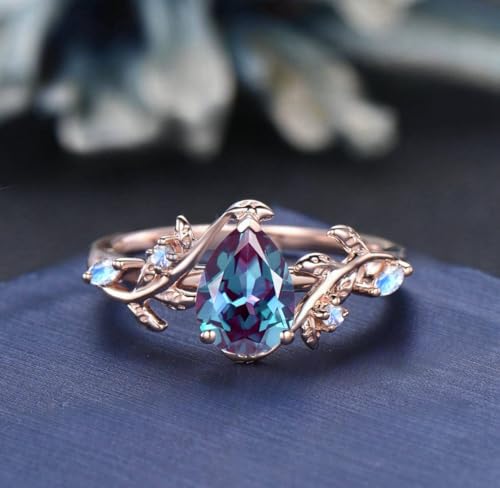 More information about Vintage Pear Alexandrite Engagement Ring Set Bridal Set for Women Blue Moonstone Accents Anniversary Promise Ring Gift